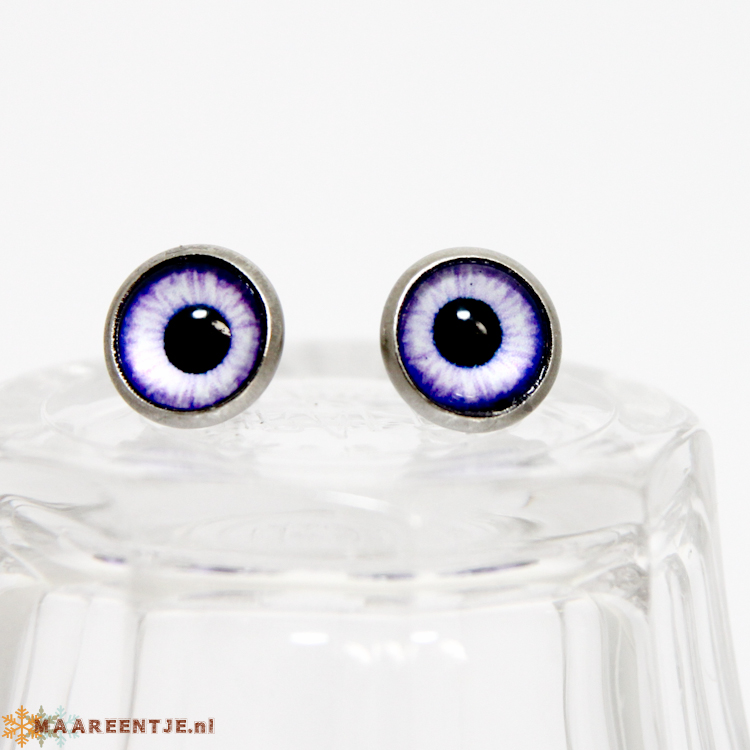 Deze oorbellen met kleurrijke drakenogen onder een glazen cabochon hebben een doorsnede van 8 mm.