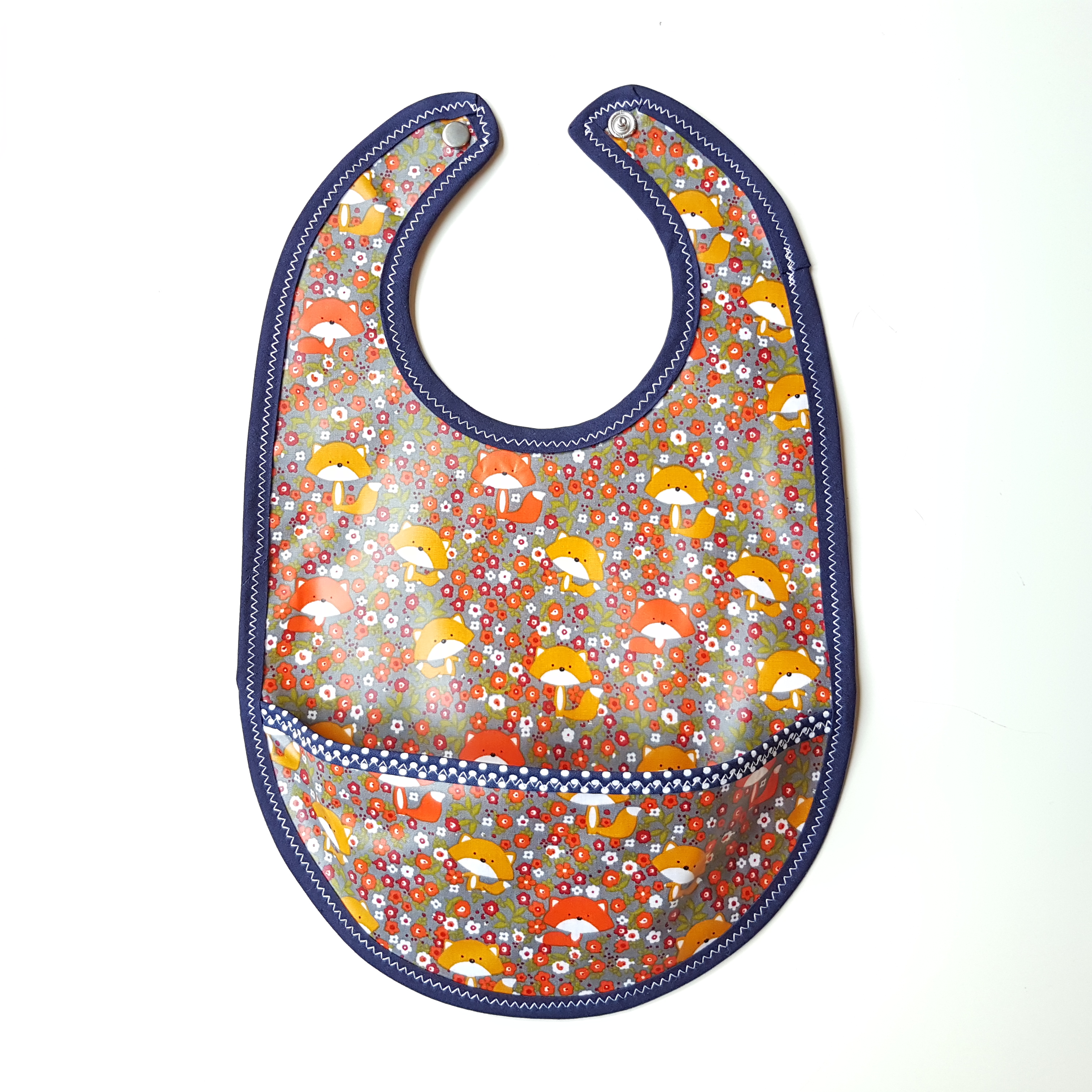 De slabber is netjes afgewerkt met biasband en aan de achterkant een bijpassend katoen stofje. De sluiting is door middel van een drukknoop